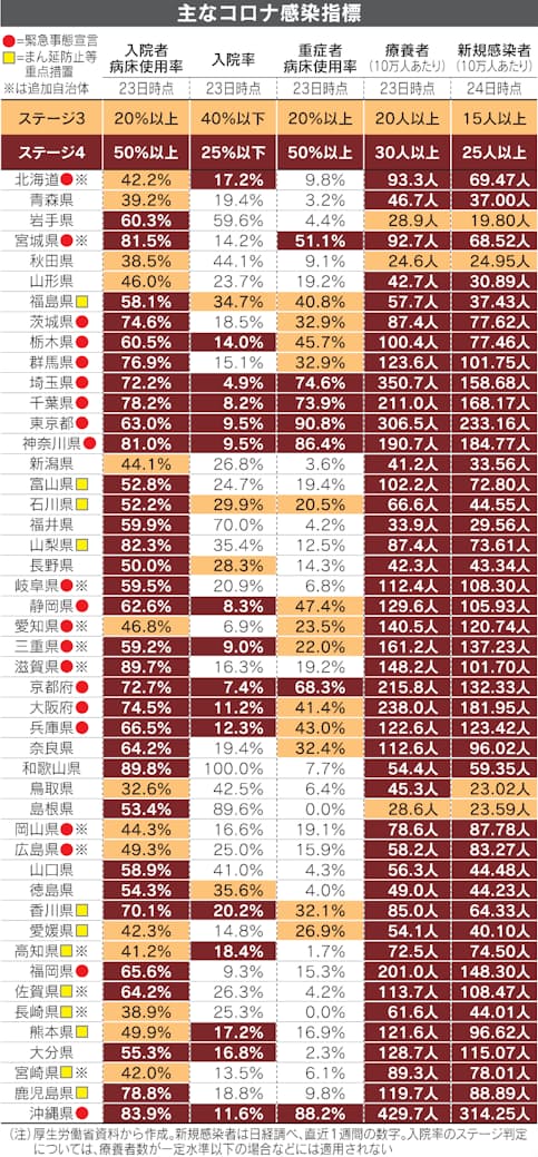 新型コロナ 都道府県の医療提供体制等の状況 Yahoo ニュース